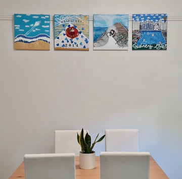 Four canvas’ of mixed media to commemorate their own love story as an anniversary gift-Rhoda and Lee, Sydney, NSW